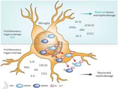 Under normal conditions, the immune cells maintain a certain level of activity while they prune nerve connections, get rid of excess cell waste and absorb excess neurotransmitters from the local environs. However, in the setting of foreign invaders like viruses or bacteria OR if there is local cell damage, they activate to deal with the excess need. Certain receptors, referred to as toll-receptors, can bind to a wide array of foreign substances and innate cell debris. Unlike the classical receptors, which are highly specific for certain compounds, these toll receptors bind to multiple substances.so that a wide variety of threats can be handled.